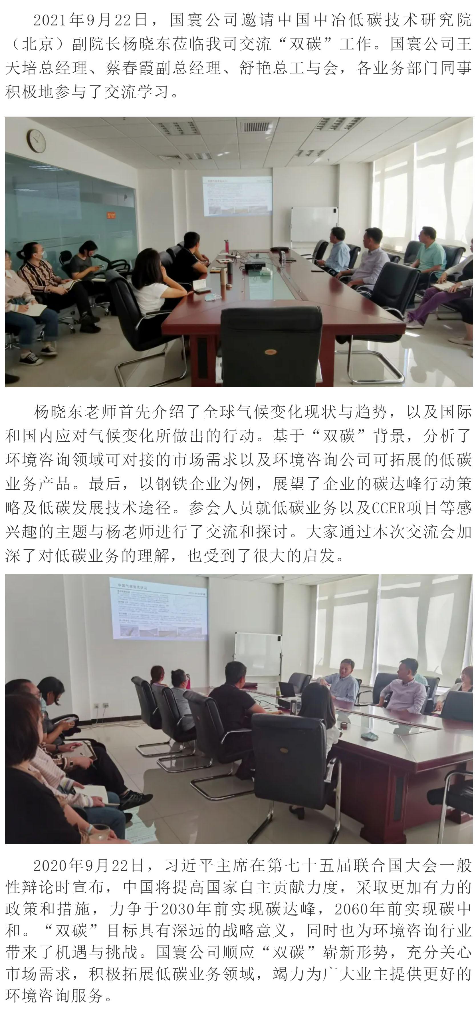中國中冶低碳研究院(北京)副院長楊曉東蒞臨國寰公司指導交流“雙碳”工作