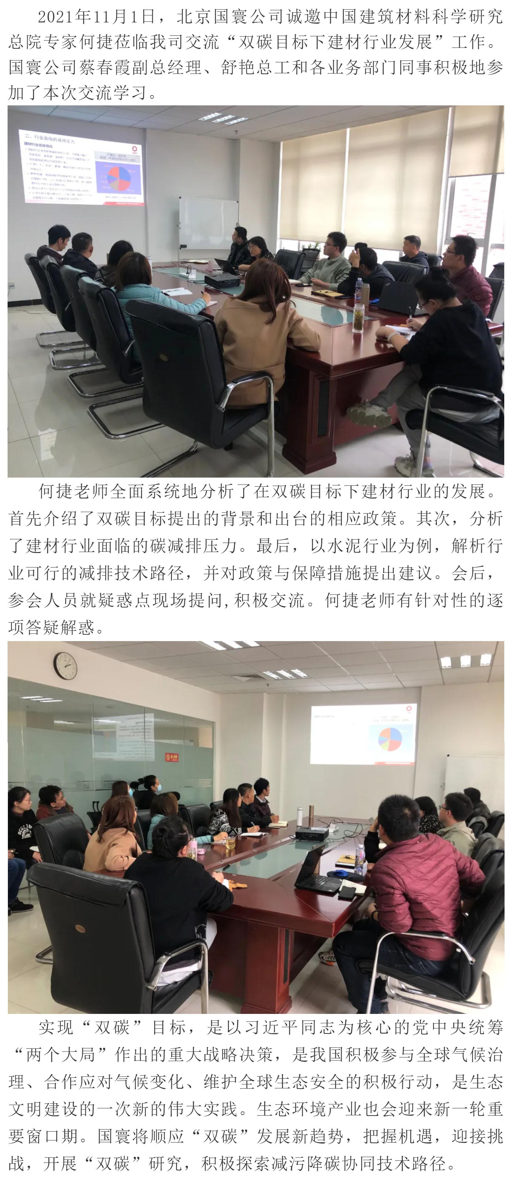 中國建筑材料科學(xué)研究總院專家何捷蒞臨北京國寰公司交流“雙碳目標(biāo)下建材行業(yè)發(fā)展”工作