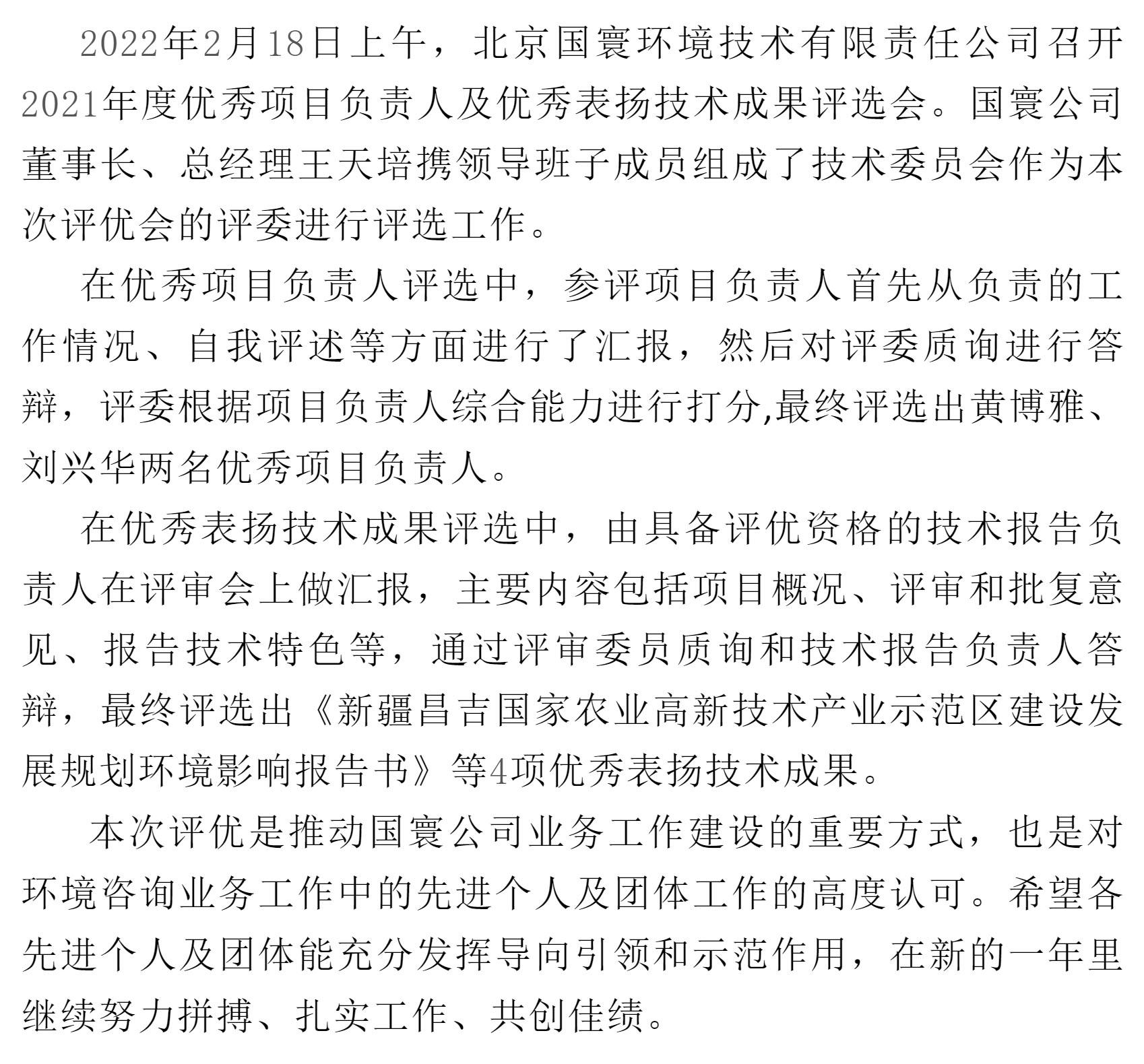 國寰公司召開2021年度優秀項目負責人及優秀表揚技術成果評選會