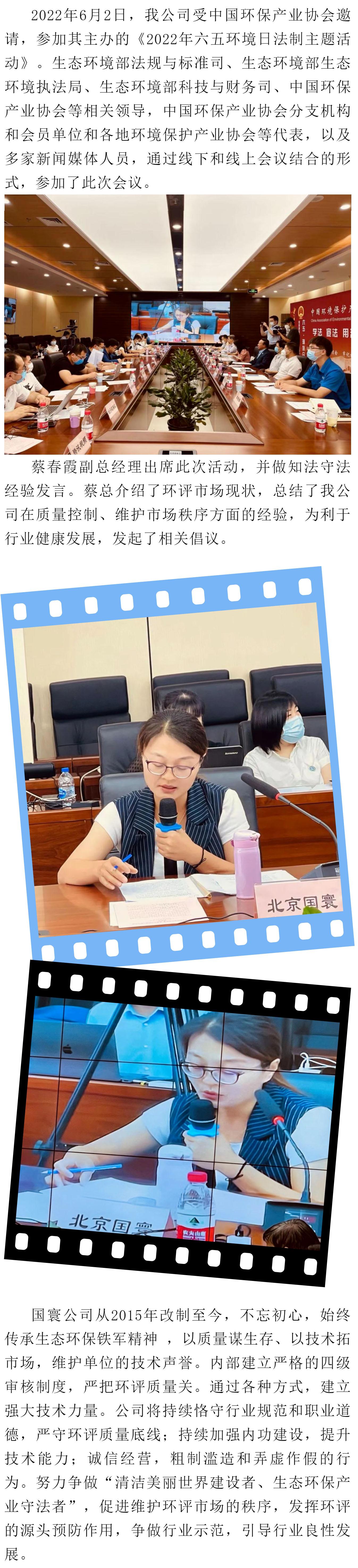 國寰公司受邀參加中國環保產業協會主辦的《2022年六五環境日法制主題活動》,并做主旨發言