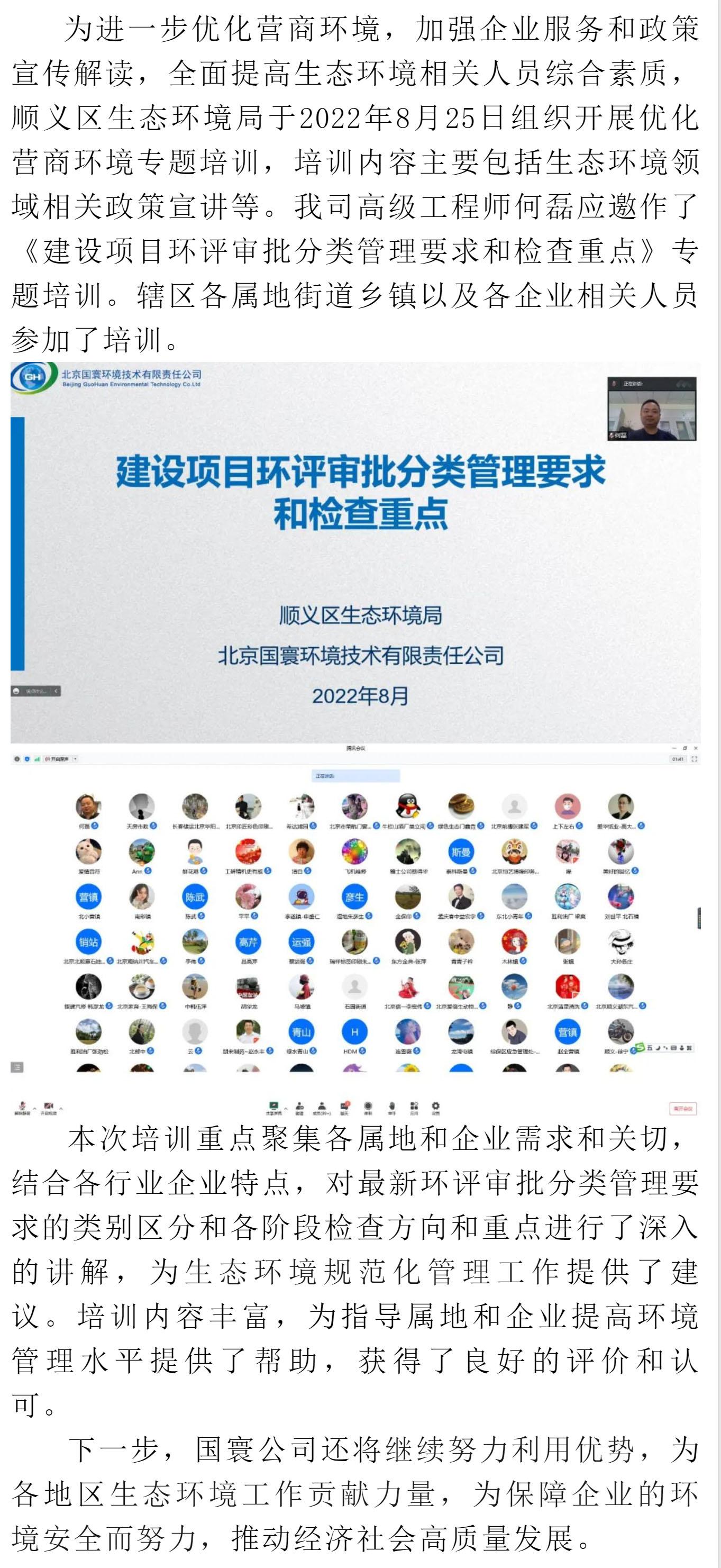 北京國寰環境技術有限責任公司應邀為順義區開展優化營商環境進行專題培訓
