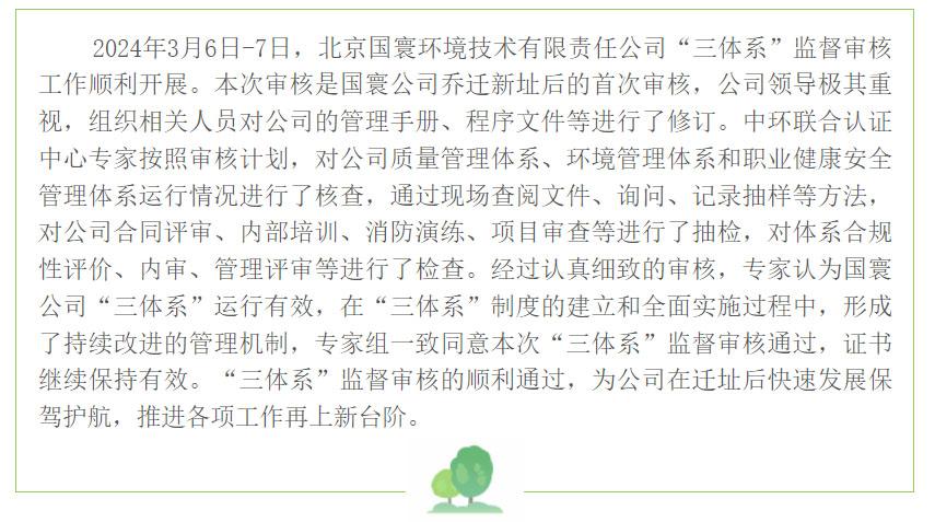 國寰公司順利通過“三體系”監(jiān)督審核工作